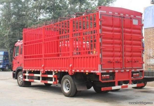 此類車型如下圖所示,車廂外部尺寸長度為6.8米,根椐車的底盤結(jié)構(gòu)來分類的話,這是一臺單橋車。可稱之為6.8米單橋。此車型的寬度一般為2.2-2.4米左右(出廠年份較早的車型相對窄一些,最近出廠的車型車廂相對寬一些)。車廂高度一般在2.2-2.7米之間。全封閉式的車廂,車廂頂上面也是封閉的,只留有后面可開門進(jìn)行貨物裝卸。當(dāng)然也有一些同類車型比較特別,為了裝卸貨物方便,會在車兩側(cè)的欄板上開一個(gè)門,在側(cè)面欄板上開的門,我們稱之為中門。如圖所示車型是沒有中門的。